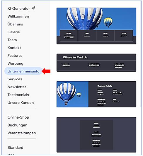 Um das Element "Unternehmensinfo" zu einer Wix-Seite hinzuzufügen, können Sie die folgenden Schritte befolgen: