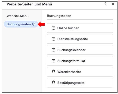 - Wählen Sie die Option "Buchungen" aus den verfügbaren Seitenvorlagen.