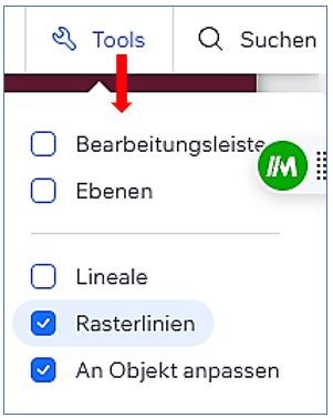 Um die Lineale im Wix Editor anzuzeigen oder auszublenden, kannst du folgende Schritte befolgen: